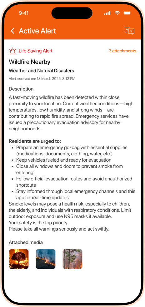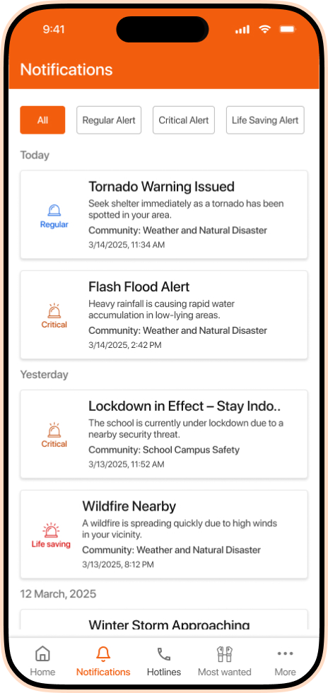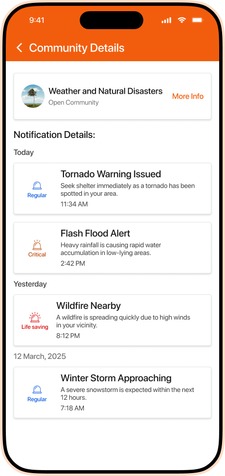 The administration application enables governing authorities to configure and send Alerts to both virtual and geo-located Communities.